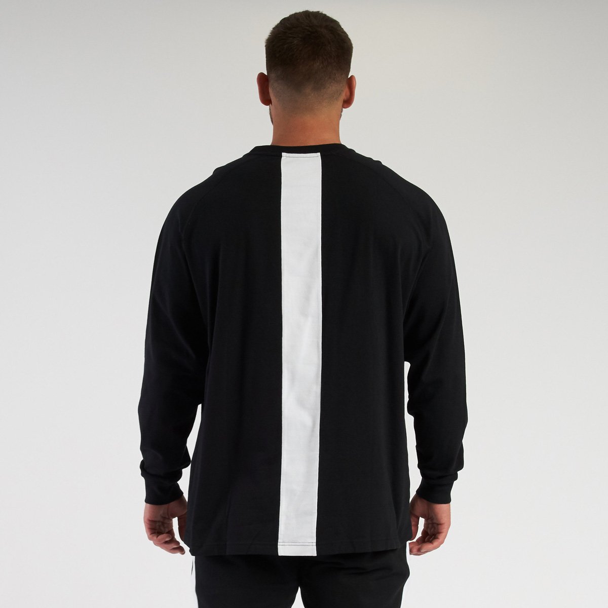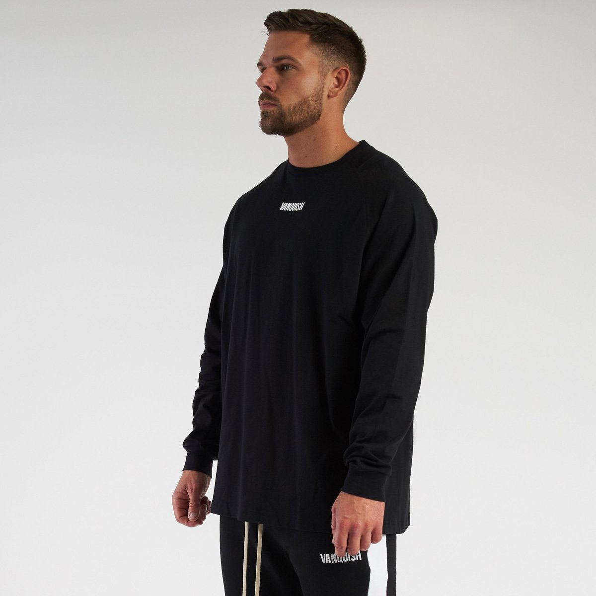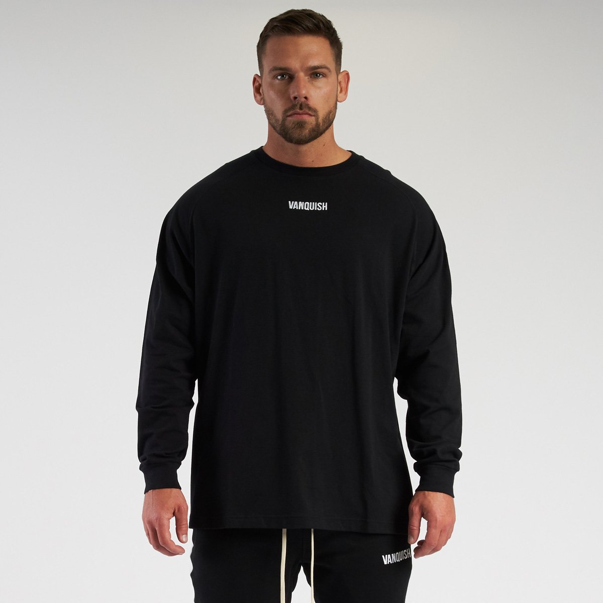 This long sleeve tee has an oversized fit with dropped shoulders. We would recommend going one size down from normal for a less oversized fit.