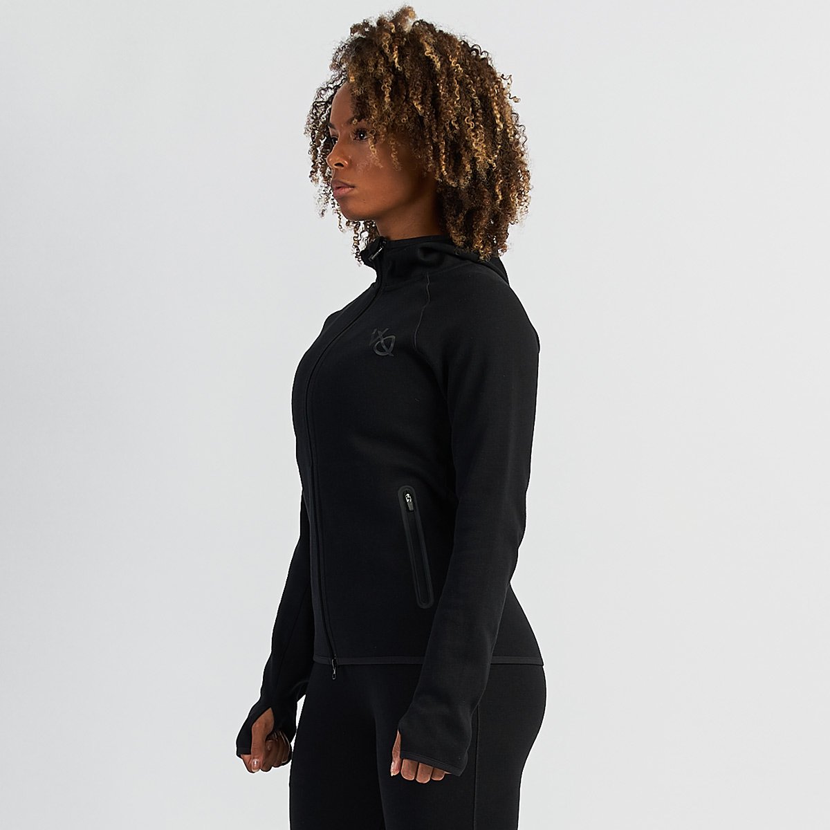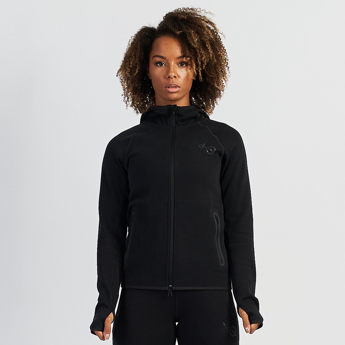 Fit: A slim fit hoodie featuring technical detailing. Designed with luxury in mind. Featuring thumbholes, quality bonded zips on the chest and side pockets and a two-way zip pocket on the full-length zipper. Heat pressed blacked-out branding on the upper chest and sleeves.