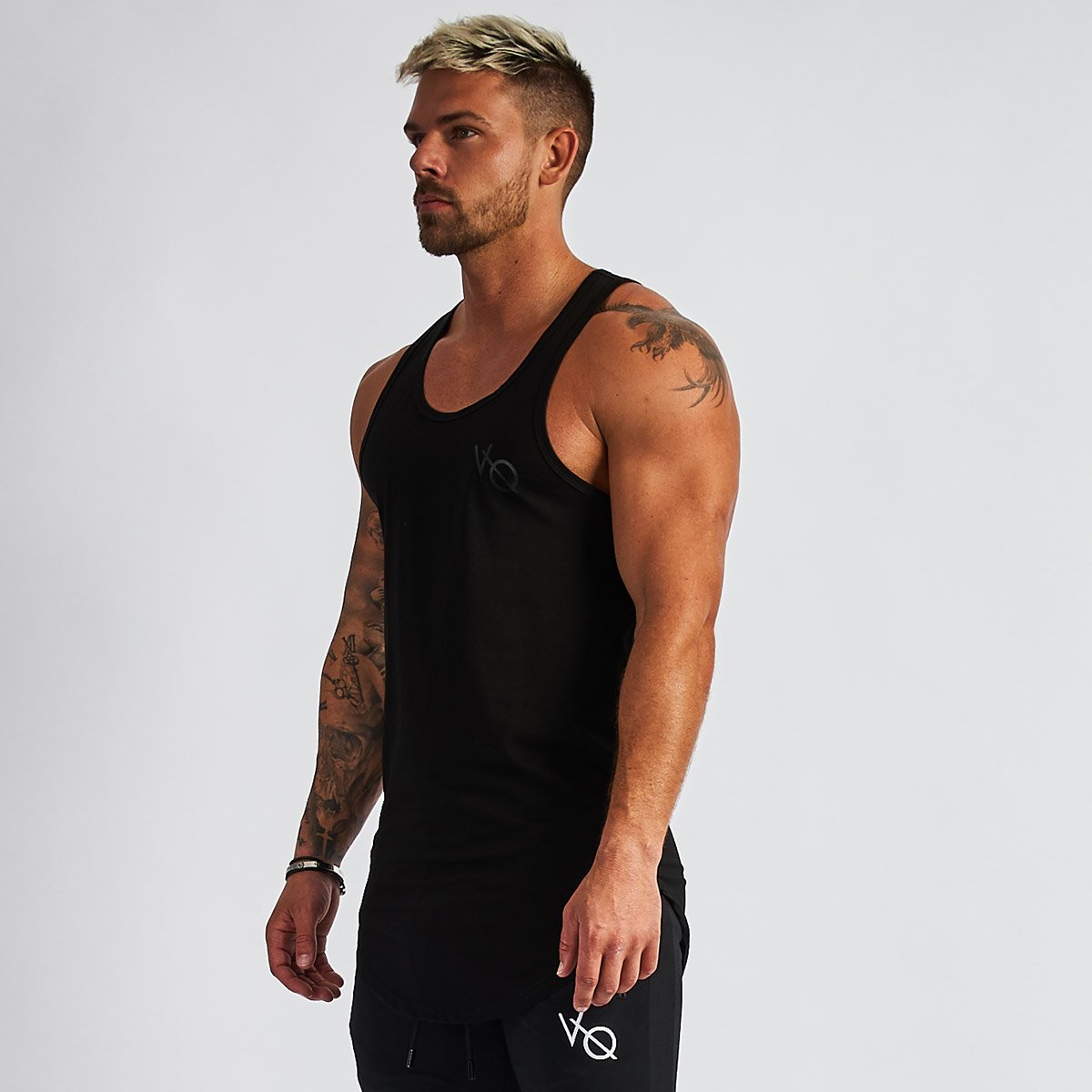 These tank tops feature a small screen-printed branding on the left chest and our signature metal hem tag. Featuring a longline tank top fit to show off the wearer's physique and allow for maximal movement.