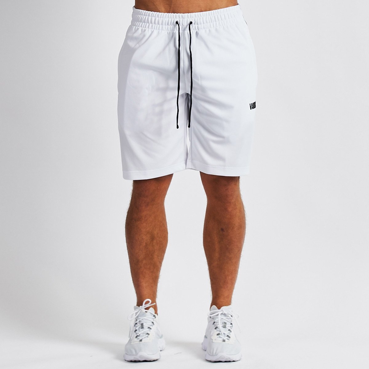 The LT v2 collection is heavily influenced by old-school sportswear trends. These shorts fit slightly loose and sit at the knee. The side and back pockets are deep and have zippers.