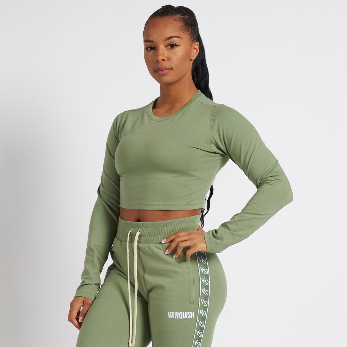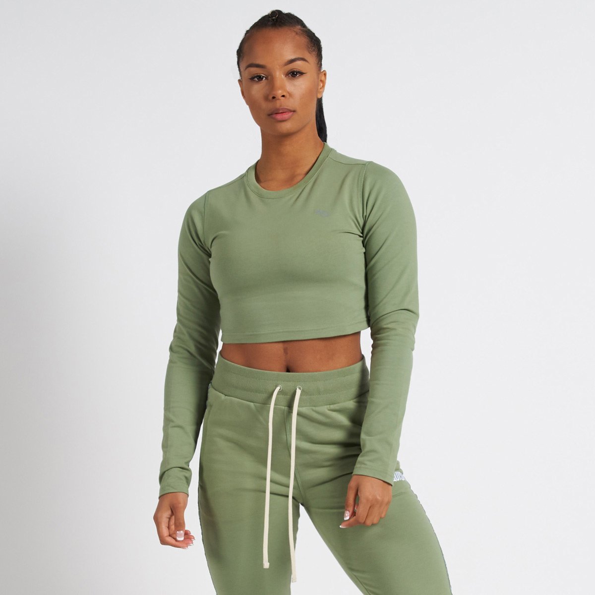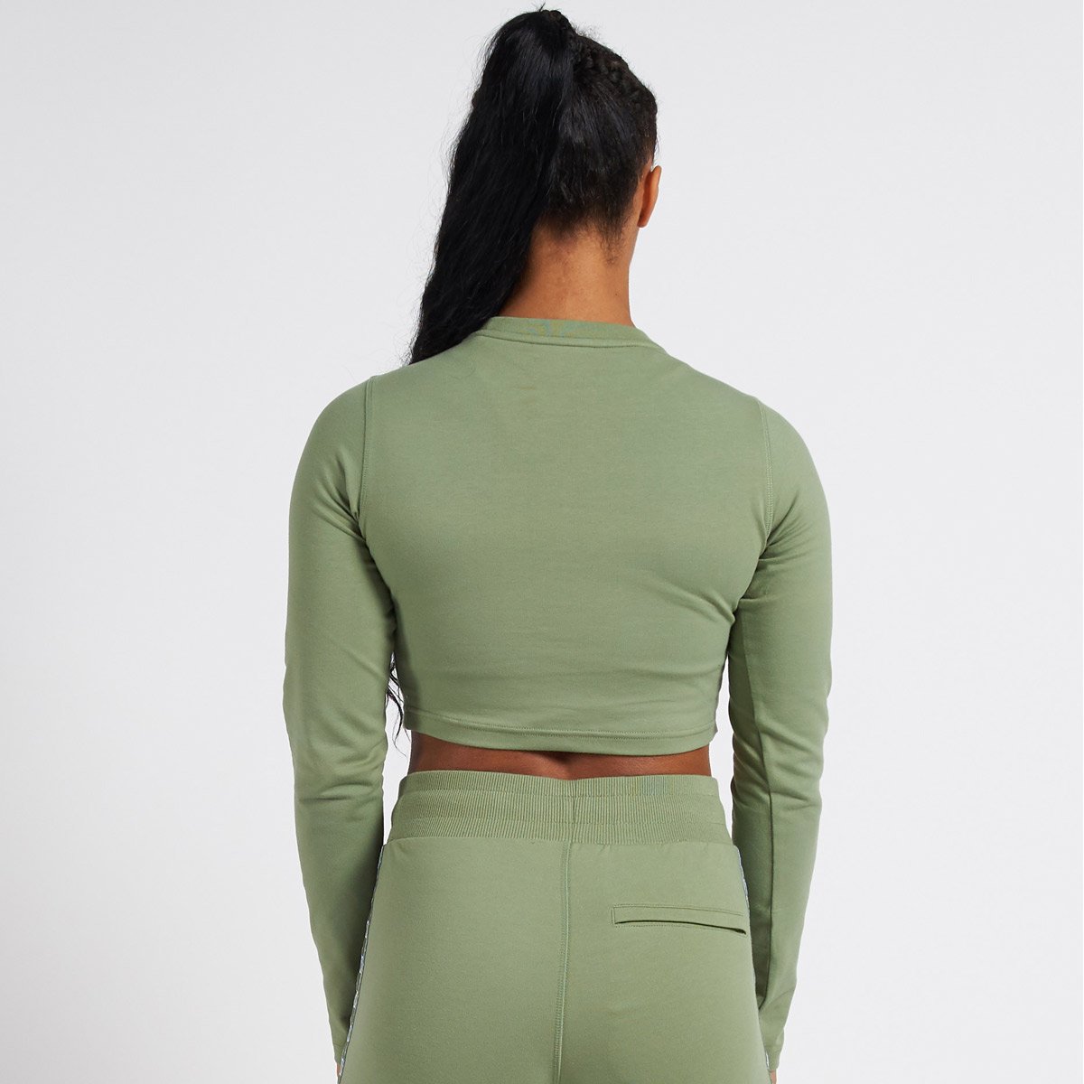 This long sleeve t shirt features a cute mid-stomach crop and subtle branding on the chest.
